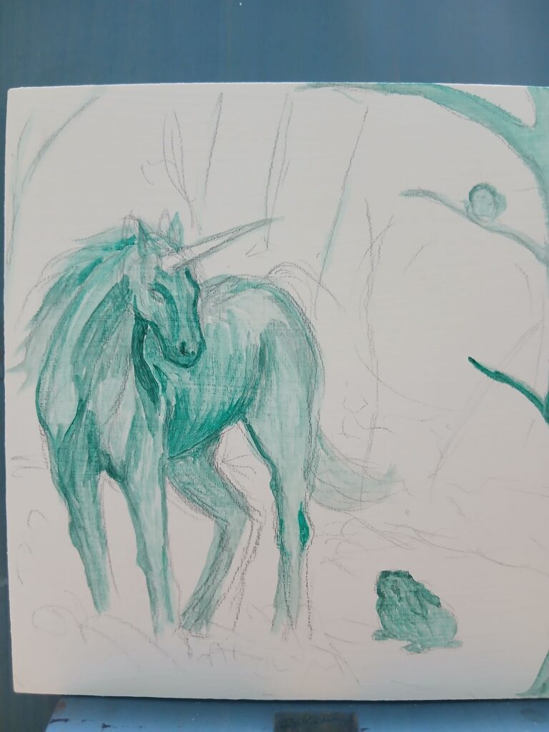 モノクロで描いた上から彩色をします。カラーで明度を表現すると難しいのでまずは立体感を出すためにモノクロで描いていこう、と言うことです。明度の差があるものをモノクロで描くなんて難易度が高いんじゃないかしら?!と思いましたが猪の如く突き進んで参りたいと思います。